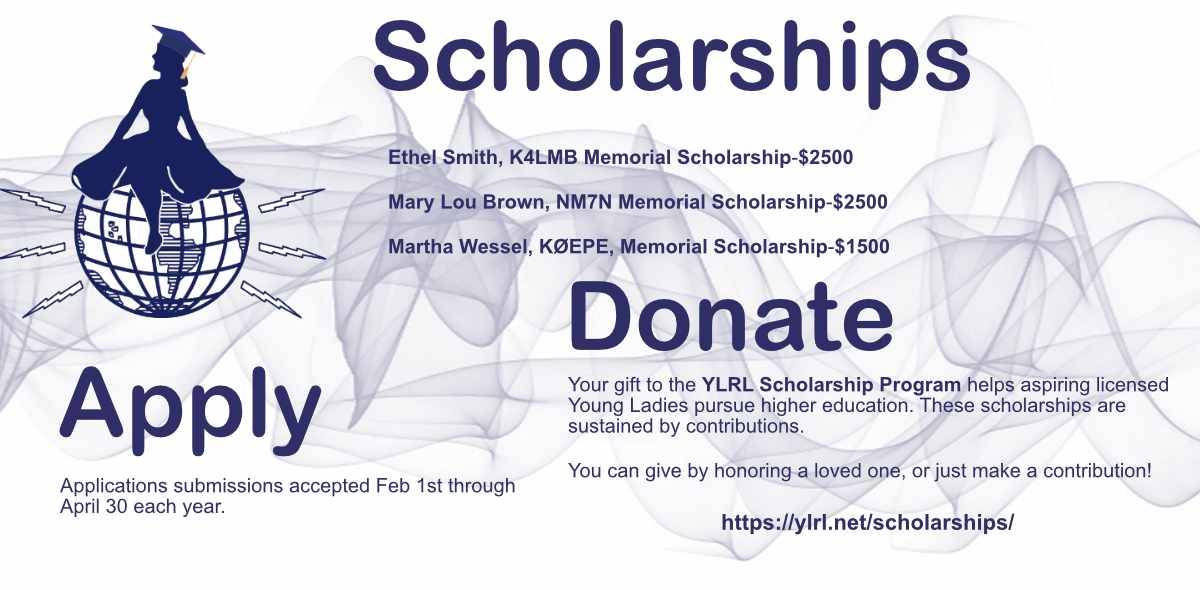 - The Ethel Smith, K4LMB, Memorial Scholarship which awards $2,500.